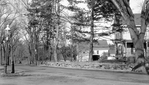 This is speculatively identified as looking north on South St. with Grove St. to the right, the long-time home of John Magee and family.