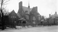 On the right is the Lincoln Grammar School. On the left is the first Manual Training School which opened in 1894. Both buildings became the Lincoln School when the Manual Training relocated to a new building on Tappan St. in 1903. On the far left is the entrance to Walnut Path.