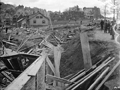 Standing on the south side of Beacon St. looking west. The apartment building at 108-116 Winthrop Rd. is in the upper left corner. In the distance on the right is the six-story apartment building at 1569-1571 Beacon St., still standing. In the foreground is the future location of Brandon Hall at 1501 Beacon St. The pile of debris is unexplained as there was no structure there previously.