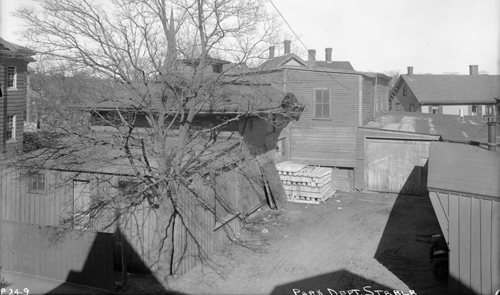 On the right is the rear of a house set back from Harvard St. across from St. Mary's church.