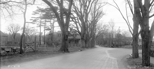 Looking southwest on Newton St., Clyde St. enters on the right. On the left is the house of the Joseph Orlinksi house at 184 Newton St. Note the man crouched down on the side and the old hydrant for the street-watering wagons. On the right is the house, still standing, of George A. Lyon at 209 Newton St.